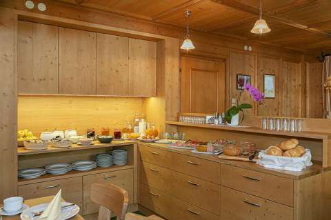 Pasticcini profumati, salumi, specialità di speck e formaggi sudtirolesi, diversi tipi di muesli, gustose marmellate e miele, yogurt, frutta fresca secondo stagione, caffè e tè, succhi e altro ancora. Potrete anche chiederci di prepararvi piatti a base di uova, al momento e secondo i vostri desideri.